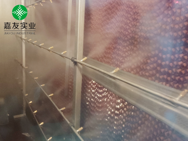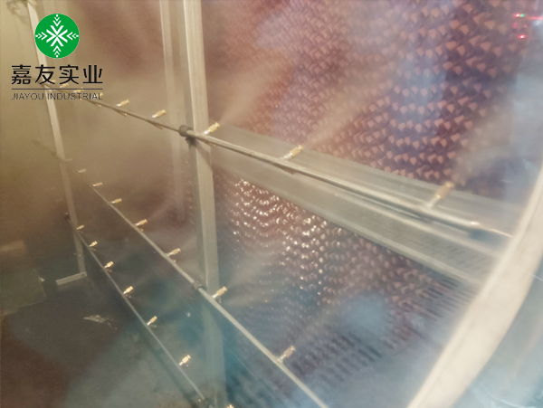 其實,杭州嘉友實業技術人員為其選擇高壓微霧加濕器作為空調機組加濕器,主要是其加濕量大、帶動的噴嘴多、安裝方便、耗能低、運行平穩、使用壽命長,對于電子車間的增濕除靜電效果好。另外就是選擇的1#噴嘴,形成的水霧顆粒小,不會打濕設備和產品,增產增質。
